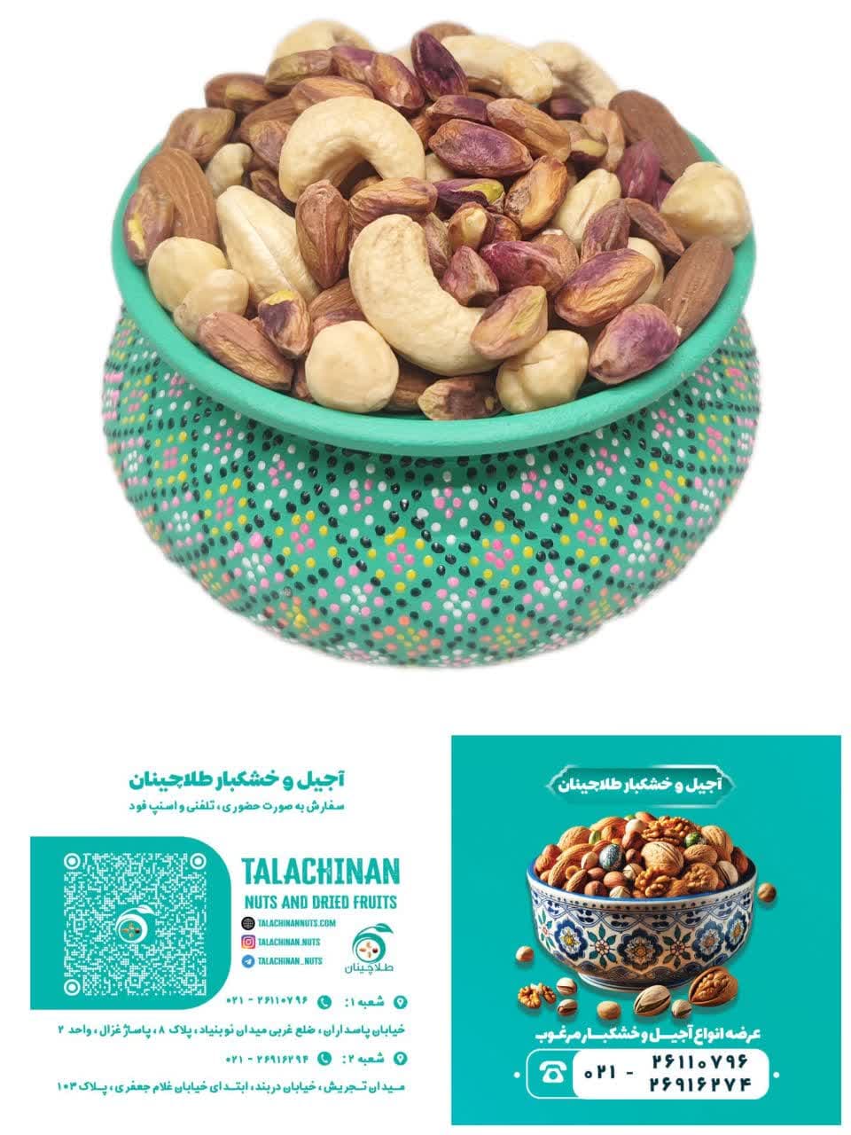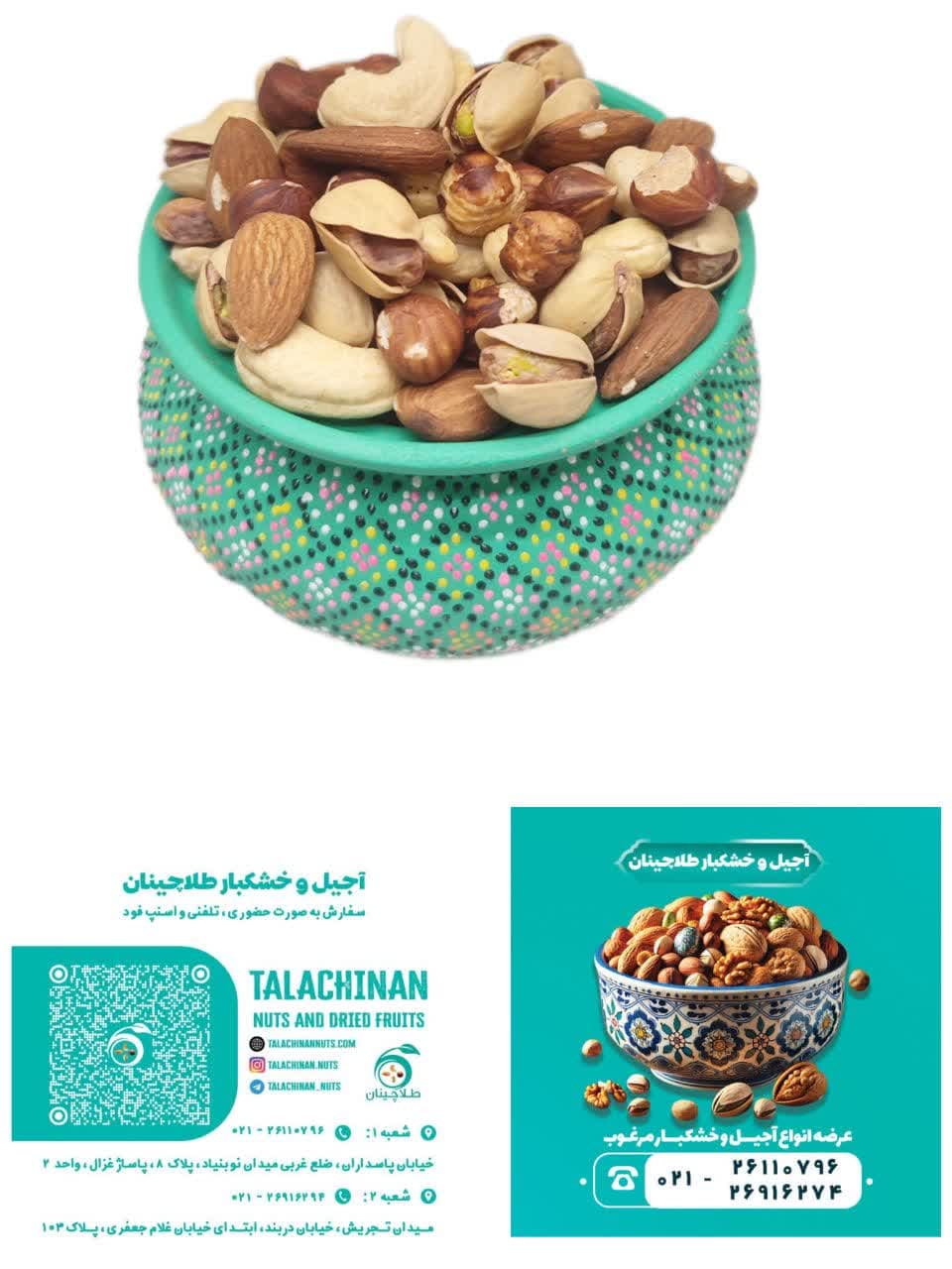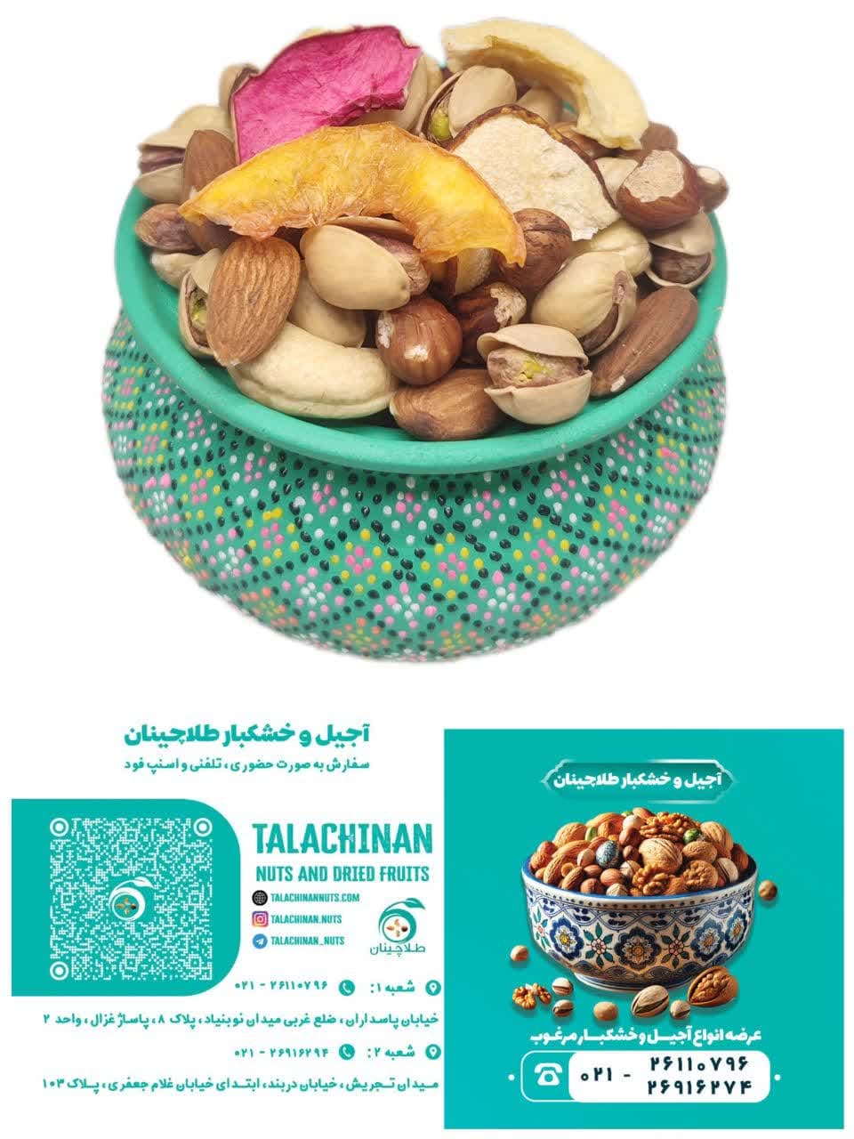 شعبه 1 - تهران- میدان نوبنیاد- مجتمع نوبنیاد- پاساژ غزال -مغازه دوم - پلاک 8- تلفن26110796-021 شعبه 2 تهران: تجریش، خیابان دربند، خیابان غلام جعفری، پلاک 103، تلفن 02126916274